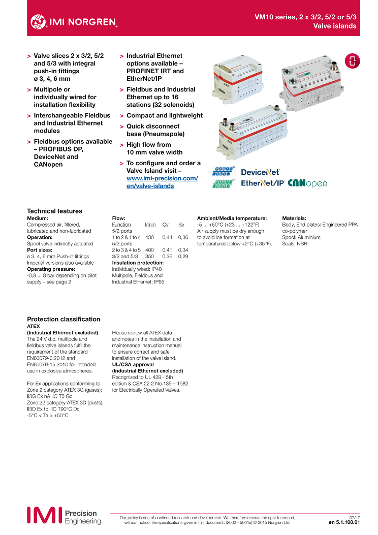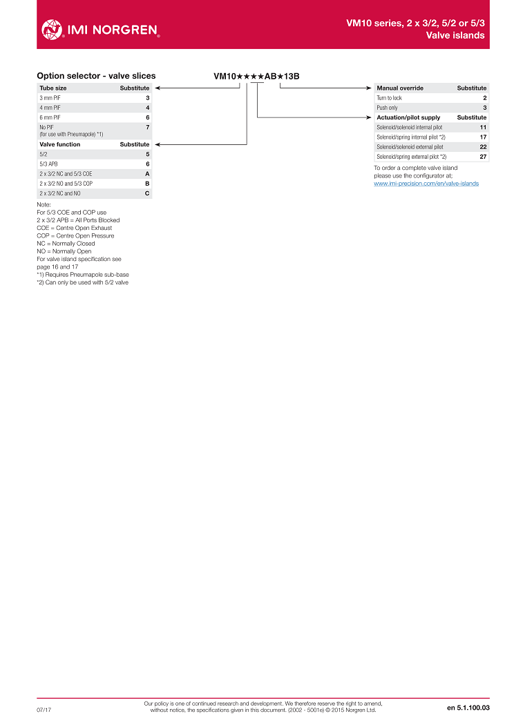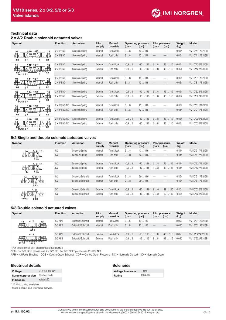 VM10 series, 2 x 3/2, 5/2 or 5/3,Valve islands,