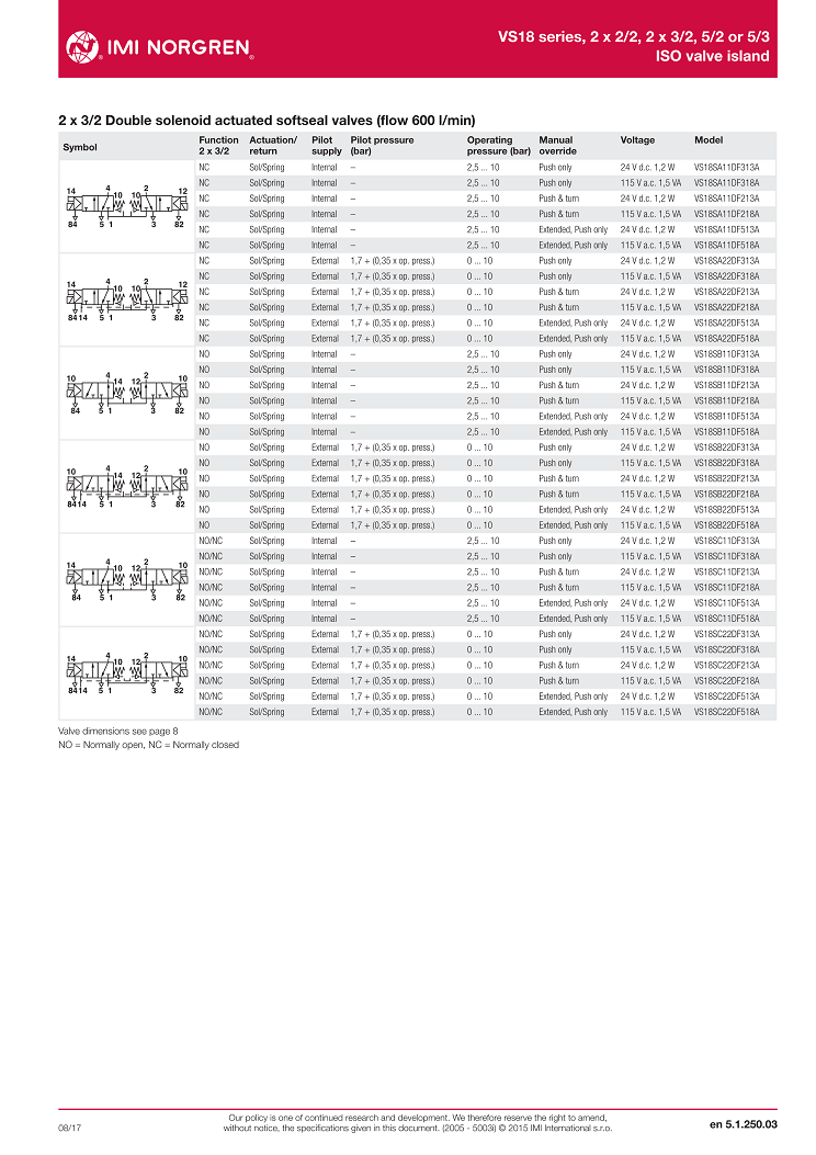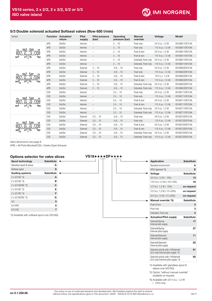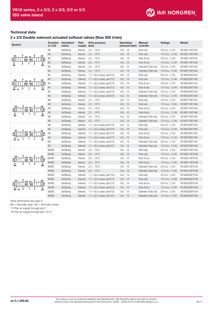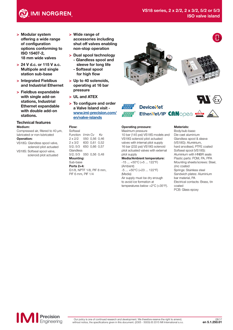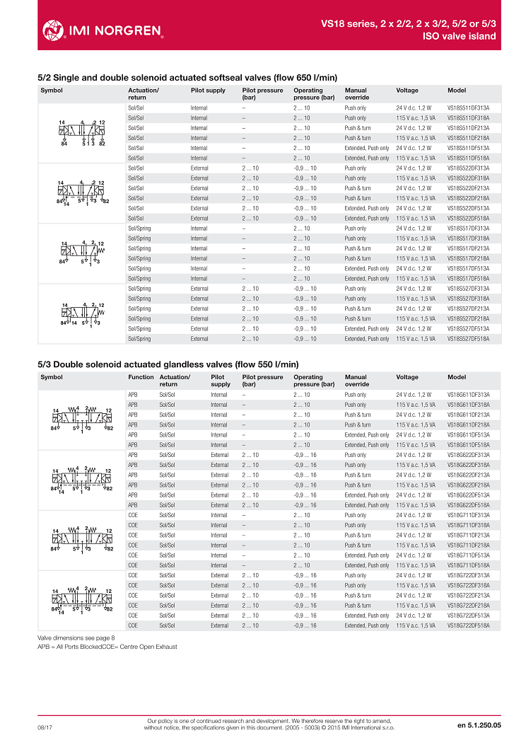 VS18 series, 2 x 2/2, 2 x 3/2, 5/2 or 5/3,ISO valve island