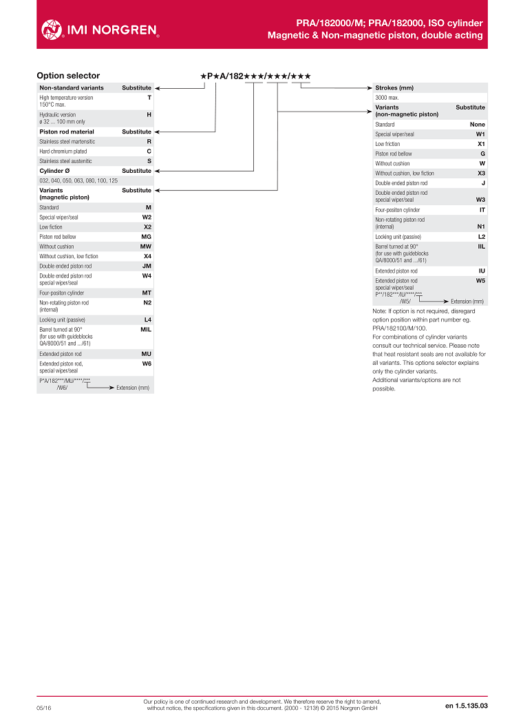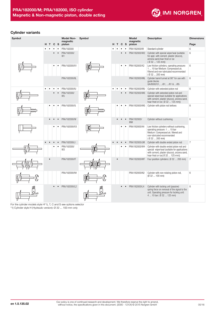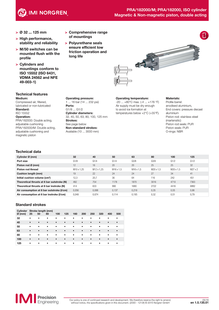 PRA/182000, ISO cylinder,Magnetic & Non-magnetic piston, double acting,? 32 ... 125 mm