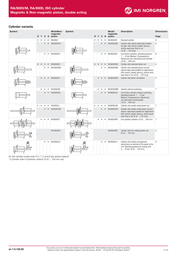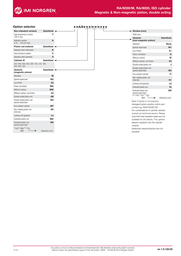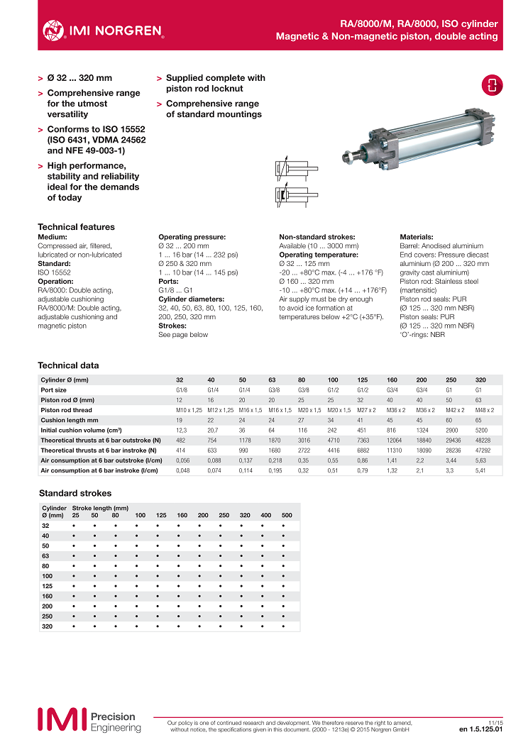 RA/8000/M, RA/8000, ISO cylinder,Magnetic & Non-magnetic piston, double acting,? 32 ... 320 mm